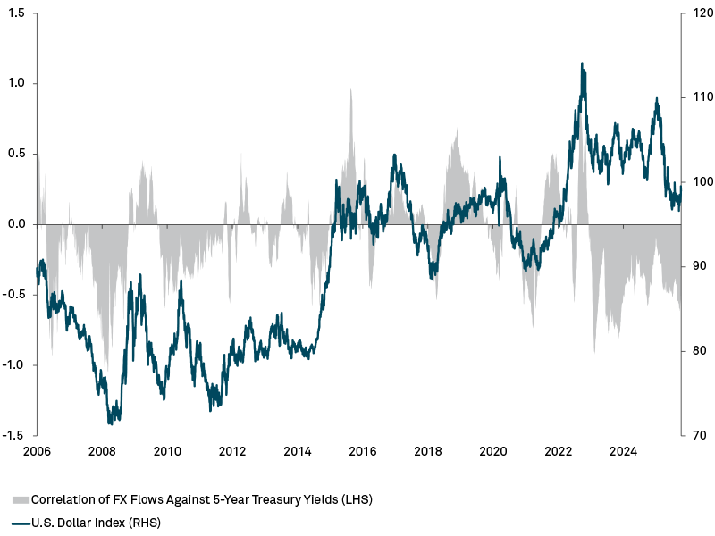 As the world continues to shift toward a multi-polar balance of power, we think multiple reserve currencies will be used for trade finance, payments and store of value. As fiscal vulnerabilities across developed economies weigh on major currencies, the U.S. dollar’s safe haven status is on softer footing. We think investors will increasingly hedge their U.S.-dollar exposure. Demand for U.S. assets will also matter. Overseas investors are generally underweight the U.S., and given our view for U.S.-led growth in 2026, it is likely they may increase their exposure to U.S. assets while actively managing the currency exposure.